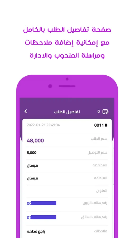 اشعارات ملاحظات الادارة , المندوب , العميل