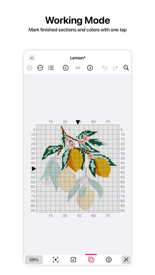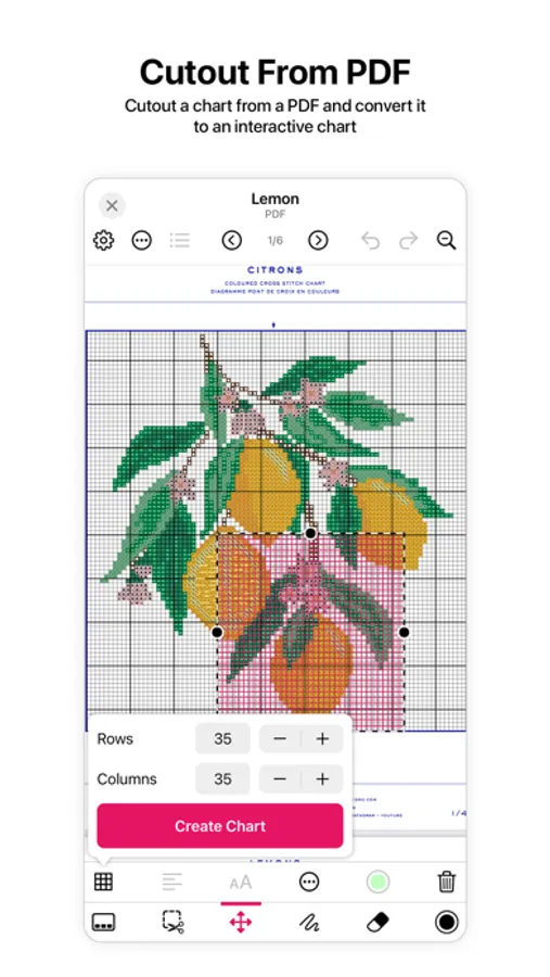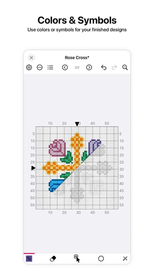 With Cross Stitch Chart you design your own embroidery charts, or follow your progress of existing designs.