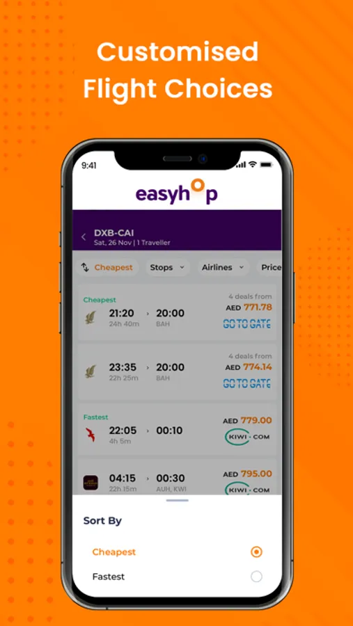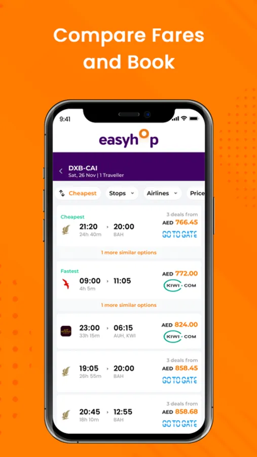 Save time and just leave it to your Easyhop app to do the search for you, as you sit back and relax – only step in to book the cheap flight of your choice after comparing the flight prices to your satisfaction.