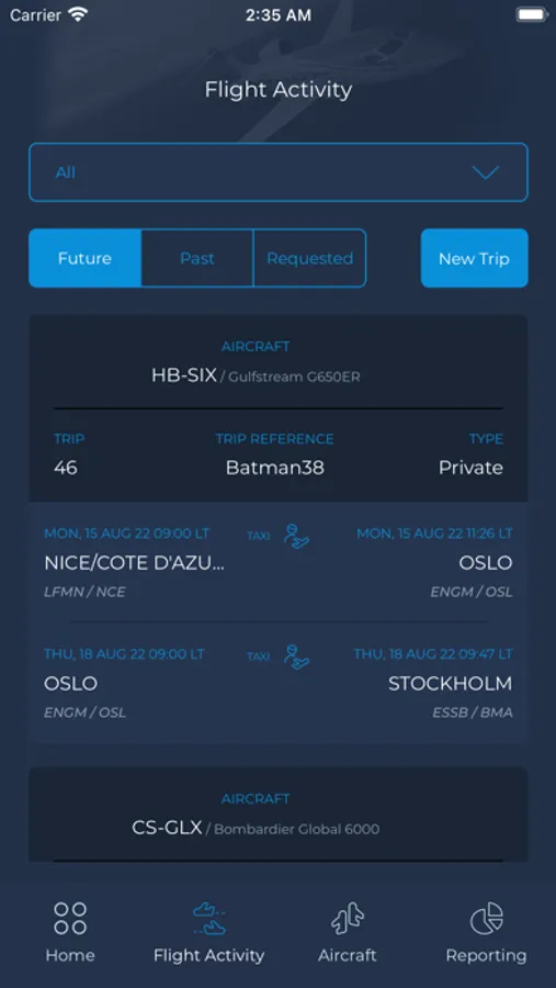 The JetManager Digital Aircraft application is the digital record of your aircraft. Access all data in real-time on a single screen like trips, digital trip briefings, flight leg details, live tracking, maintenance data and reporting.
