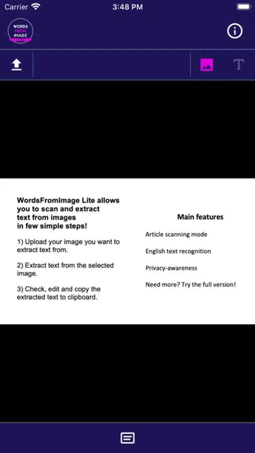 WordsFromImage Lite allows you to scan and extract text from images in few simple steps: