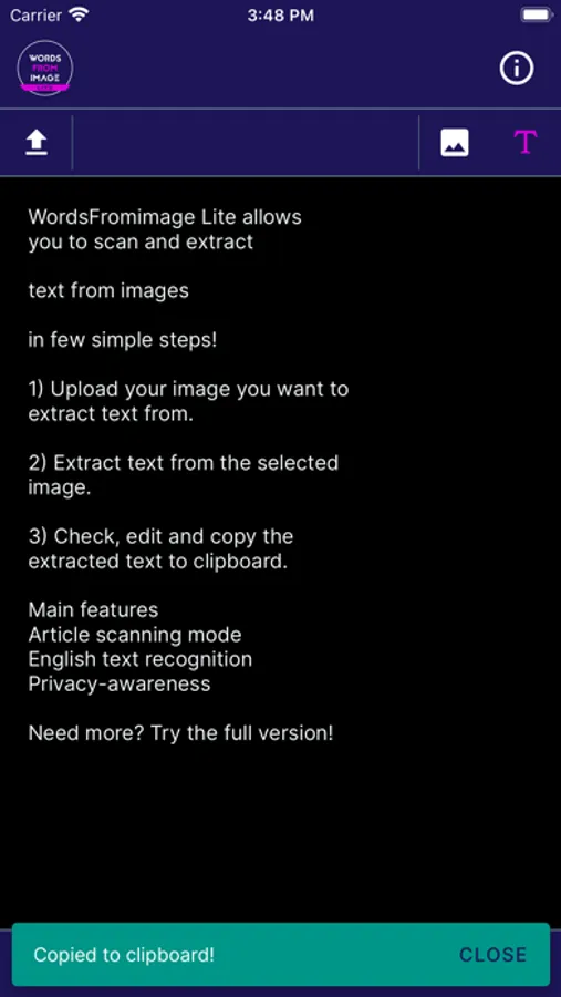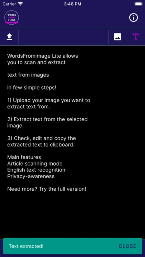 Need more Features? Try the full version of WordsFromImage!