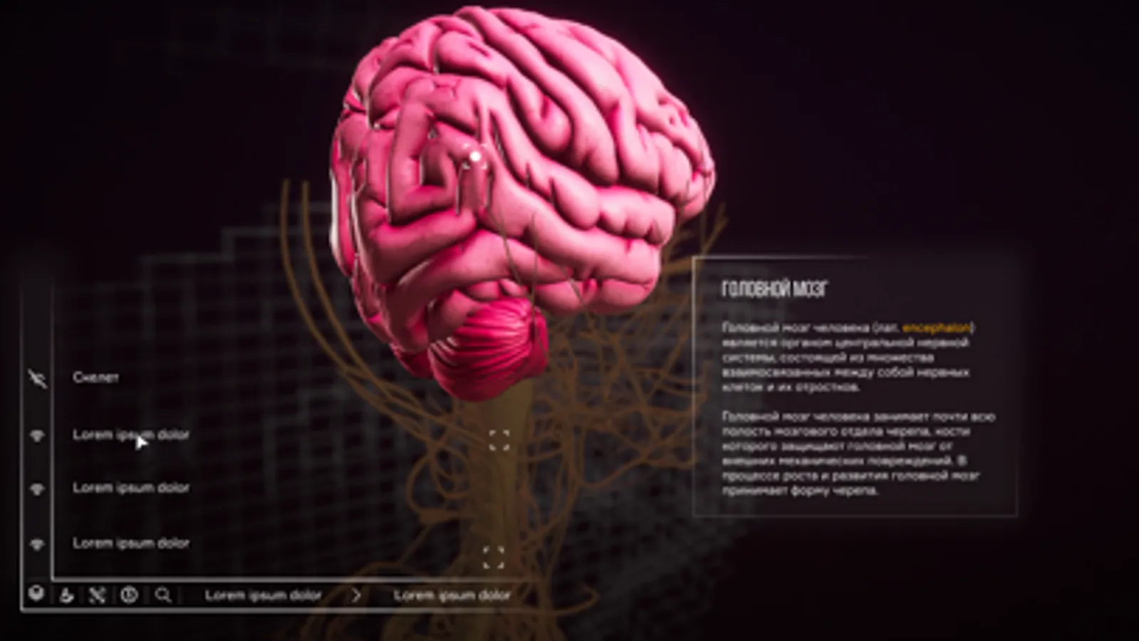 Systema - это приложение предоставляющее набор курсов по анатомии человека, каждый из которых включает в себя множество интерактивных уроков в трехмерном пространстве с развернутой информацией по каждой теме, аудио сопровождением и обширным набором заданий с уникальными механиками для закрепления и проверки полученных знаний.