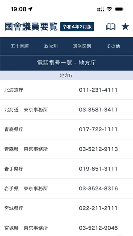・電話番号:地方庁、特殊法人、認可法人、地方共同法人、共済組合等、主要団体、労働組合、報道関係