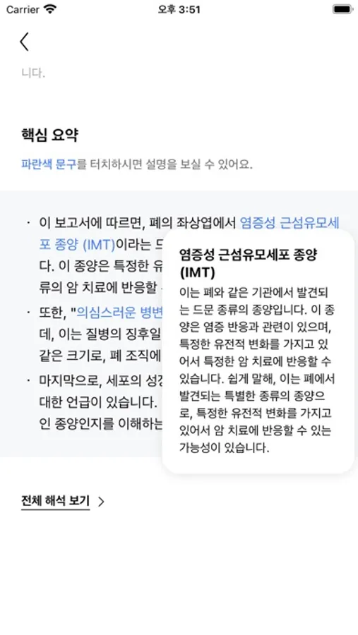 병원에서 받아오는 어려운 영문 의학용어와 약어, 한국어가 섞인 MRI, CT, 조직검사 결과지 등을 조금 더 이해하기 쉽게 풀어드려요.