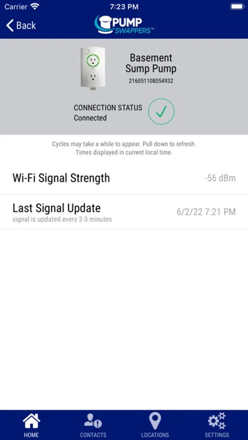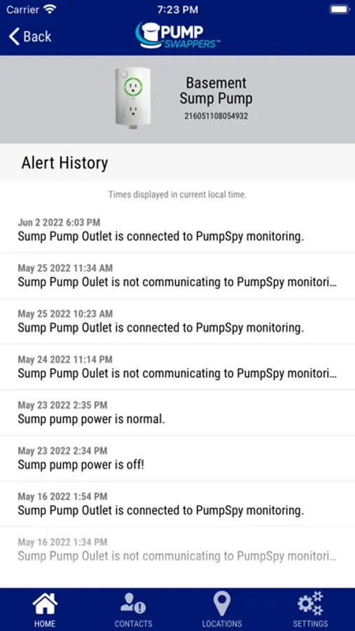 The Pump Swappers app alerts you in the event of your sump pump malfunctioning, high water alert, power loss and other important events. You can act to prevent water damage before flooding can occur. View real-time current conditions, pump activity and alert status.
