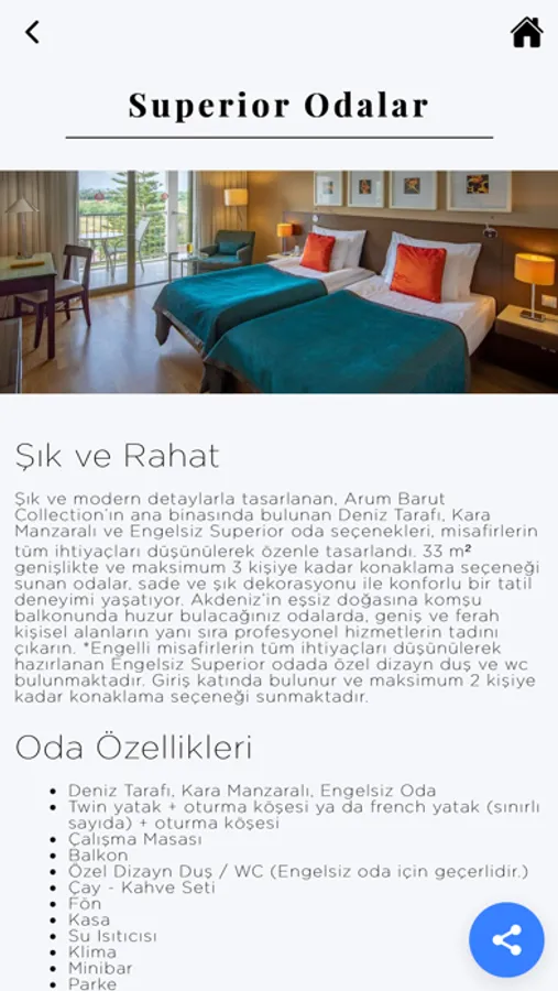 Uygulama, henüz otele gelmeden kişisel bilgilerin Pre Check-in bölümüne girilerek giriş işlemlerinin hızlandırılmasını sağlıyor. Odanız hakkında detaylı bilgi sahibi olabilirsiniz ve otelde bulunduğunuz süre içerisinde a la carte restoran, spa rezervasyonlarını yapabilirsiniz. Tüm istek ve ihtiyaçlarınızı anında bizlere iletebilir, ayrıca aldığınız tüm hizmetlerle ilgili yorumlarınızı yazarak ve anket olarak uygulama üzerinden iletebilirsiniz.