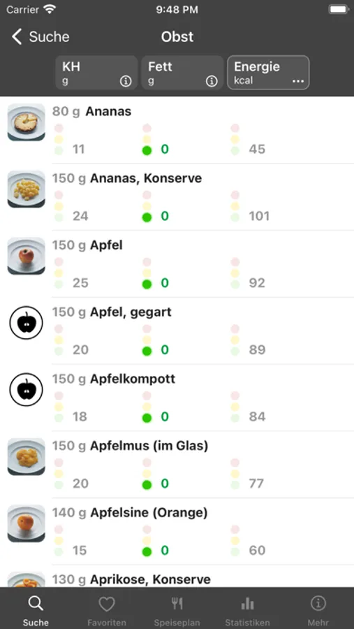 • Detaillierte Angaben zu 1200+ Lebensmitteln