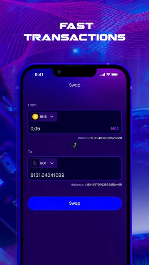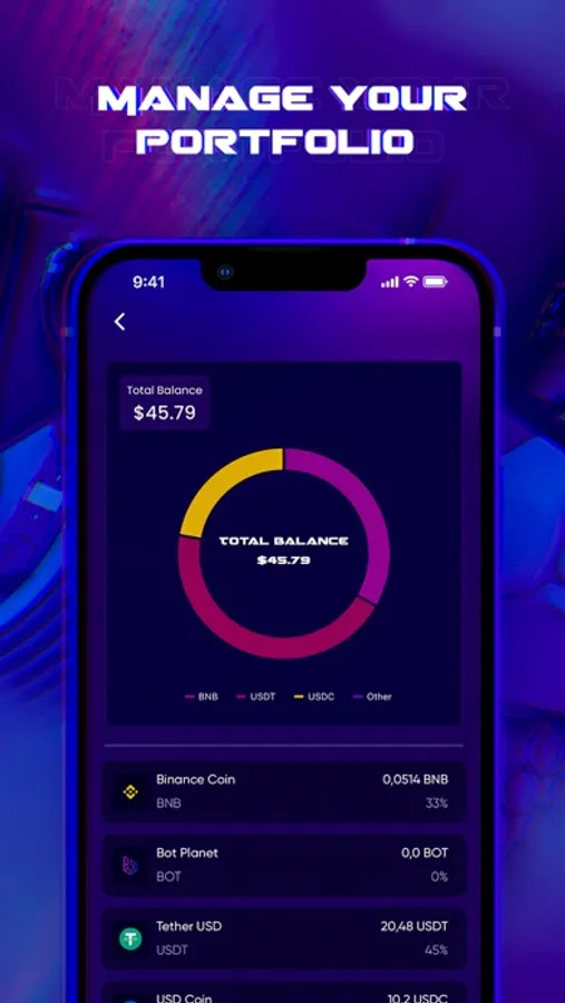 The Bot Wallet provides the easiest yet most secure way to connect to the Bot Planet ecosystem, and also an easy way to store and exchange tokens. Everything you need to manage your digital assets. You are always in control of interactions in our decentralized network.