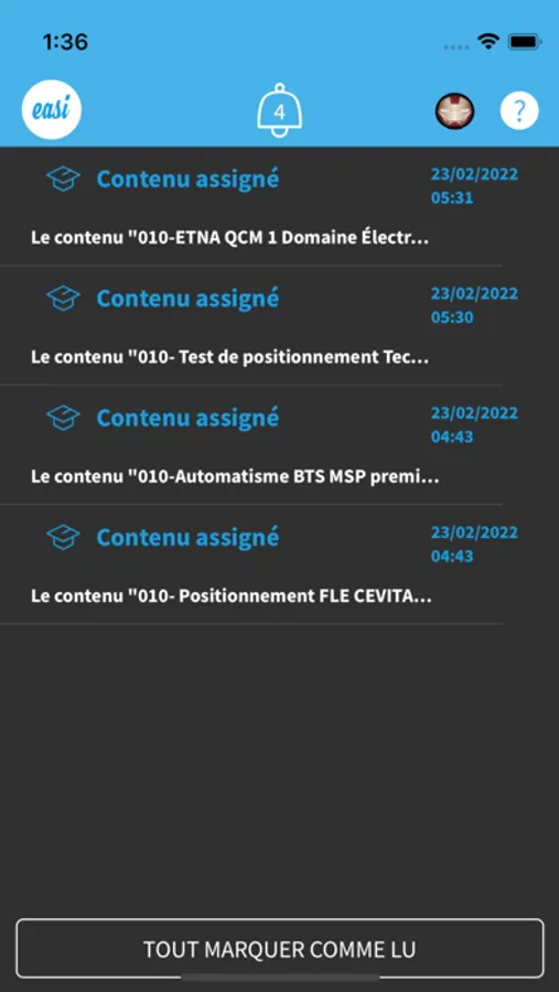 Recevez et consultez les informations, tâches et évènements EASi par notifications en temps réel. Simple d’utilisation, l’application EASi notification vous permet de recevoir les alertes et messages sous forme de notification directement sur votre téléphone mobile. Contenu assigné, call planifié, nouvel espace partagé… EASi notification vous aide à vous organiser. Et pour améliorer votre expérience sur EASi notification, rendez-vous sur easi-training.fr pour configurer les notifications reçues sur votre mobile.