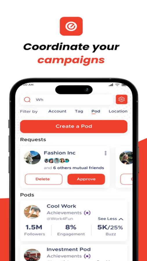 • Create pods to collab with multiple creatives and measure your success across a variety of channels