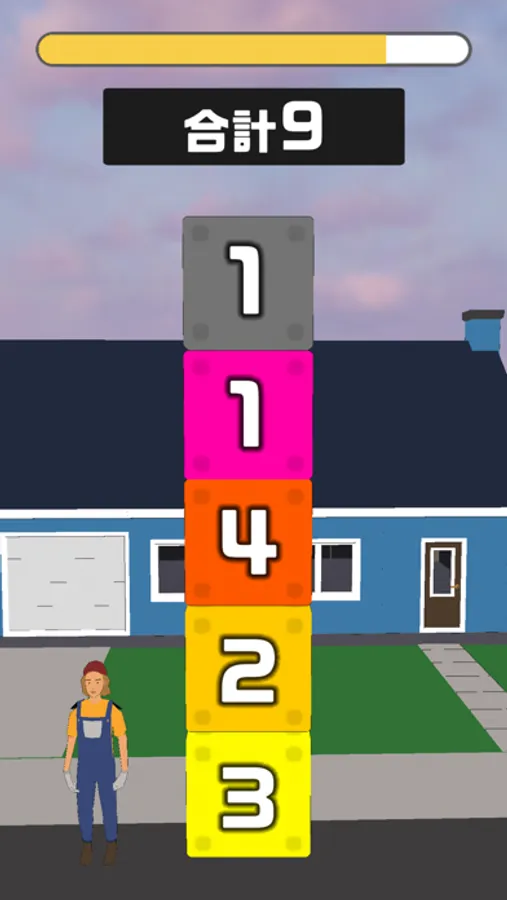 ブロックの数字の合計がお題の数になるように、いらない積み木をタップで吹き飛ばしてください。
