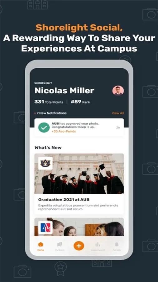 The Shorelight Social App lets you tap into a loyalty network and obtain points for your snaps. Just grab a picture or video of your favorite place, moment, or memory at your university and tag it on our app under your campus. The more original images and videos you snap, the more points you generate.