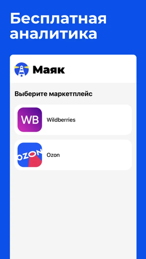 Маяк — приложение для поиска новых ниш, прибыльных товаров на Вайлдберриз и Озон, поставщиков, анализа продаж конкурентов и динамики рынка.