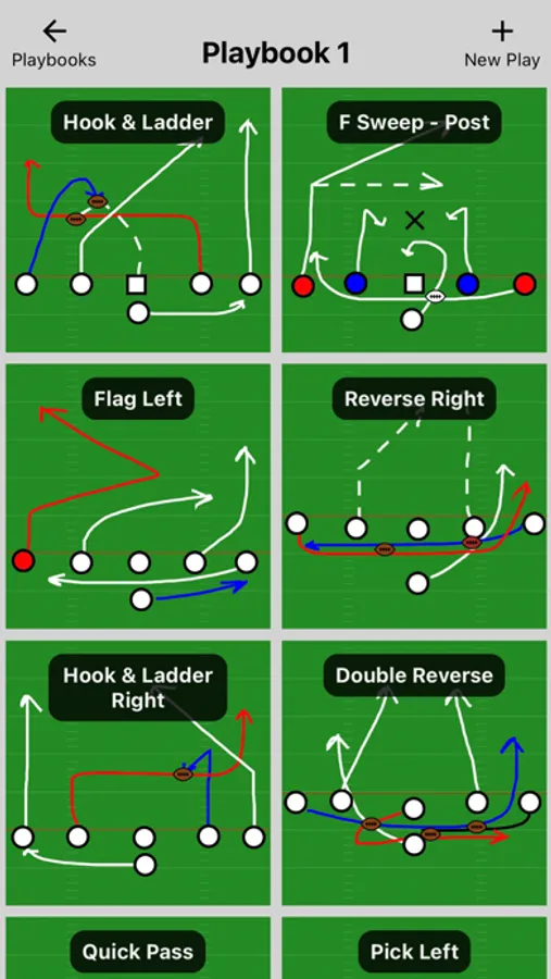 Create plays and playbooks and find plays quickly during games using an intuitive play swiper and grid interface. Easily create and organize your team's football plays with an easy to use and powerful play editor.