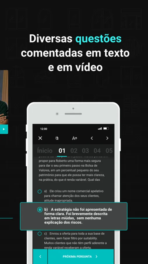 Para isso, disponibilizamos um aplicativo exclusivo para os nossos alunos, permitindo assistir aulas acompanhadas de timelines com conteúdos exclusivos, exercícios de fixação comentados em vídeo e e-books completos para te ajudar a aprender cada vez mais.
