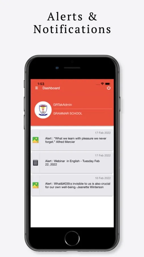 2. Notice Board - To view the details of the events taken place in the school, also can receive periodical alerts of invitations of any events conducting by the school.