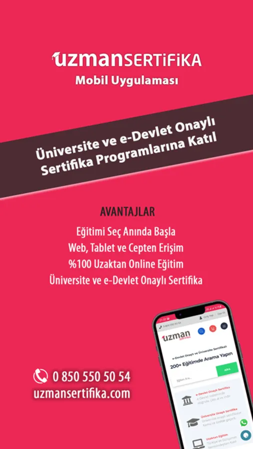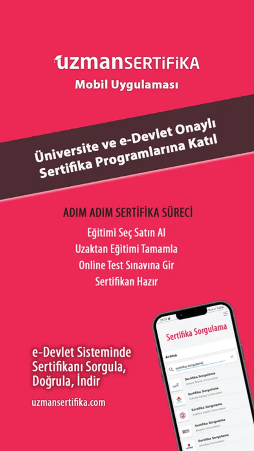 Üniversite ve e-Devlet onaylı sertifika programlarını inceleyebilir, uygulama üzerinden satın alabilirsiniz.