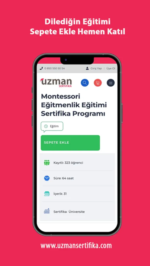 Mobil uygulamamıza özel indirimlerimizden yararlanabilirsiniz. (Size özel indirimler için Uzman Sertifika® mobil uygulamasının bildirimlerini açık tutunuz)