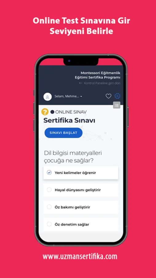 Online test sınavına girebilir, sınav sonucunuzu anında görüntüleyebilirsiniz.