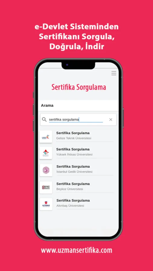 Üniversite ve e-Devlet onaylı sertifikanızı ilgili bağlantılarımız ile sorgulayabilir, doğrulayabilir ve indirebilirsiniz.