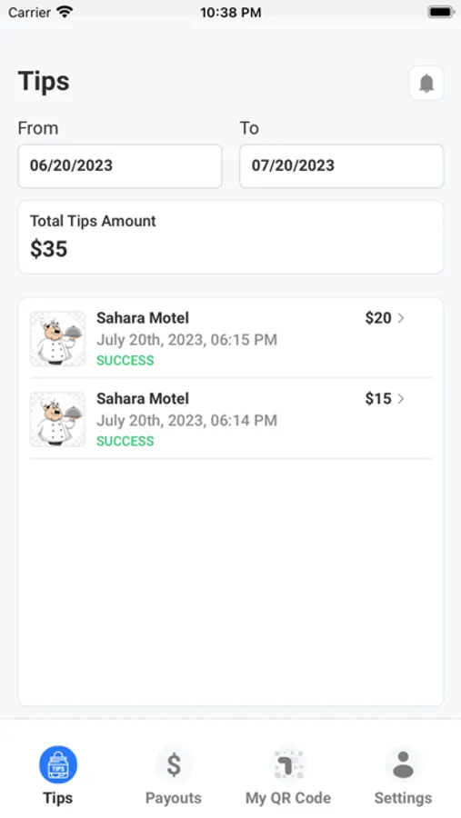 The TOVA app allows you to participate in receiving tips through any establishment associated with the TOVA brand. This app allows you to create a custom profile, track your tips received/hours worked on an ongoing basis, and update your personal payment information at any time.