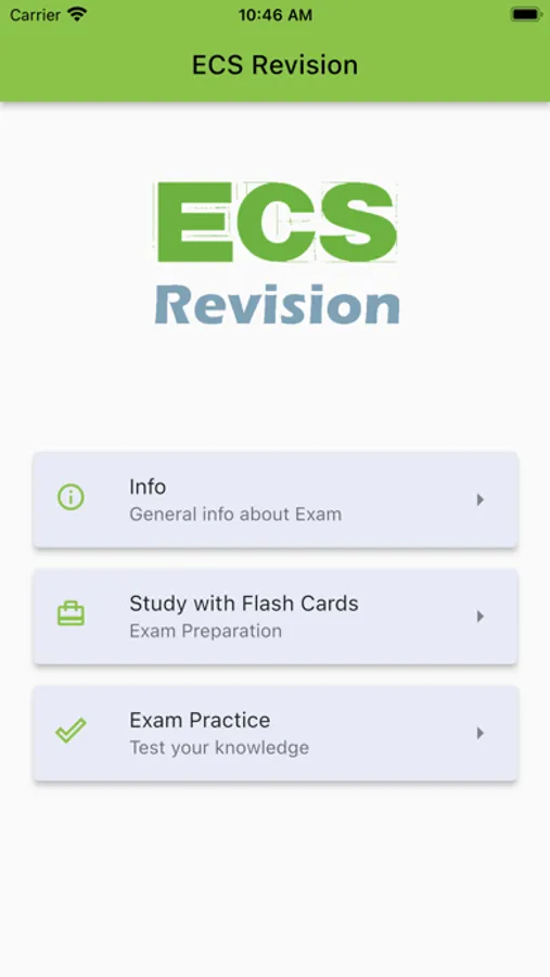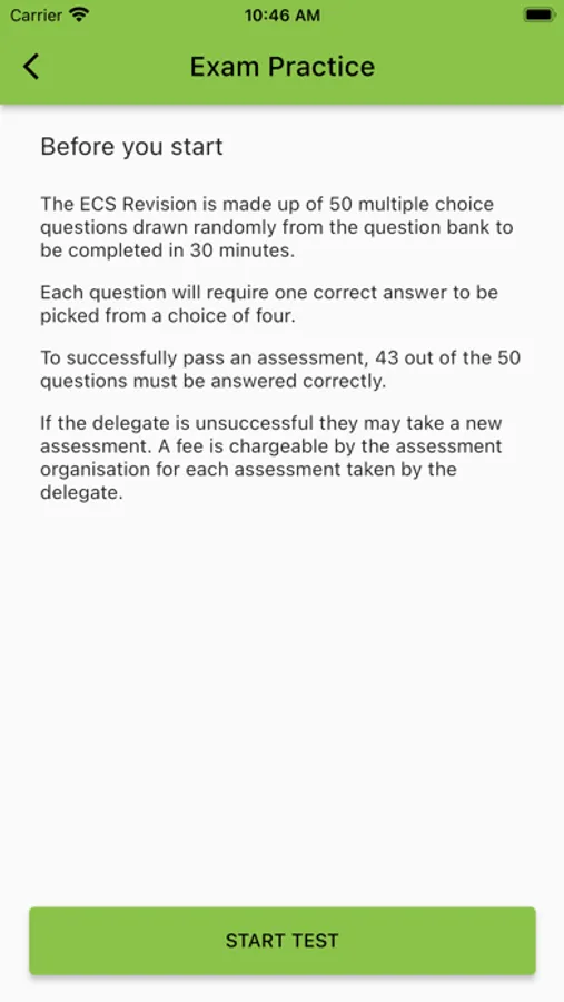 The ECS Revision is made up of 50 multiple choice questions drawn randomly from the question bank to be completed in 30 minutes. Each question will require one correct answer to be picked from a choice of four.
