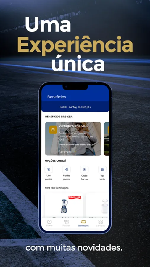 Esse é o programa de pontos que o cliente BRB CBA merece! Agora você pode acompanhar direto no APP o seu saldo de pontos e ainda conta com a vitrine exclusiva de produtos do nosso Marketplace, com grandes parcerias para você trocar os seus pontos por produtos incríveis.