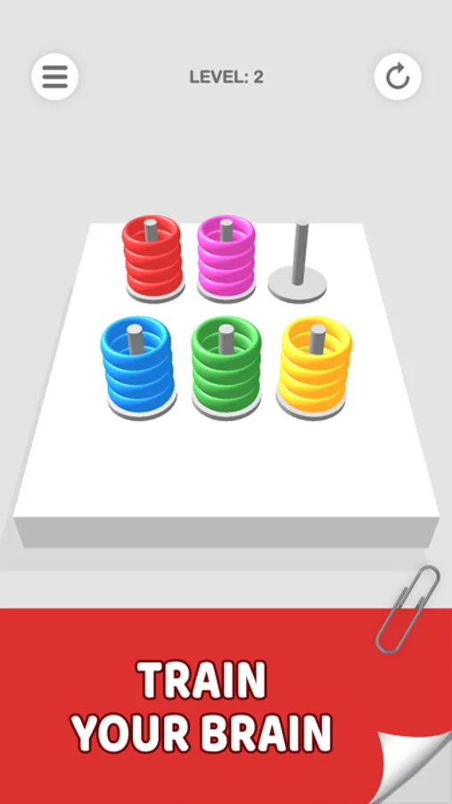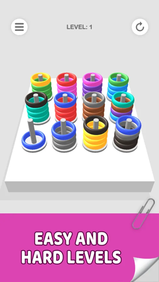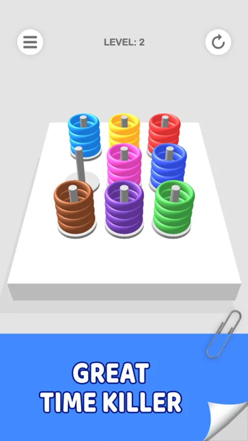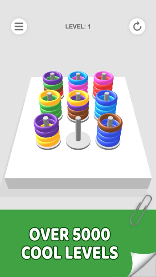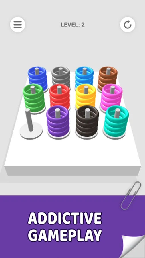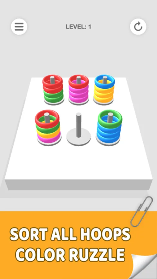 Classic addictive sorting puzzle game. Sort the colorful hoops.