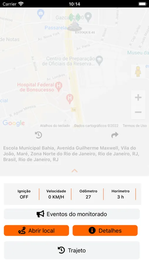 Aplicativo de monitoramento com recurso de histórico, compartilhamento de localização, endereço, trajeto, eventos e posição atual no mapa