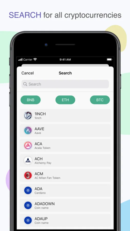 With Cryptofolio you can track any popular cryptocurrency such as Bitcoin, Ethereum, Binance coin, Shiba, Doge and many more. In this crypto app you can find TOP cryptocurrencies, portfolio tracking, converters for your token and coin portfolios. From bitcoin to altcoins, get accurate real-time rate data all at once, from Binance's authoritative cryptocurrency data provider.