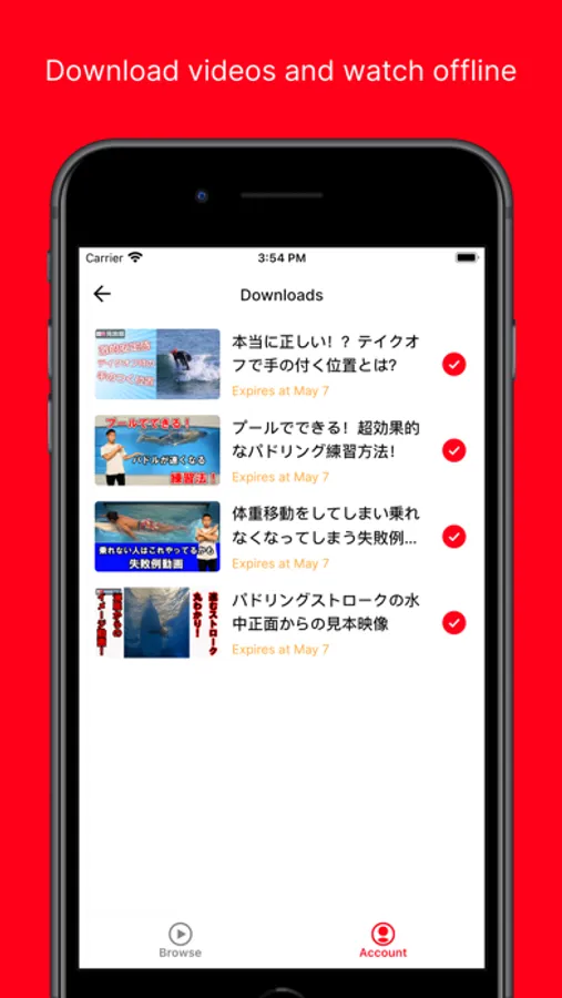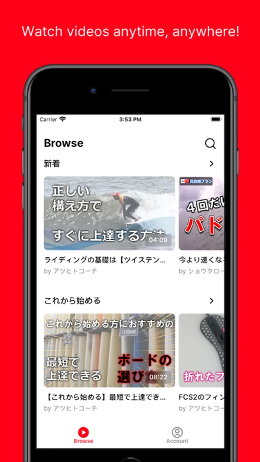 サーフィンのレッスン動画を配信する動画アプリです。