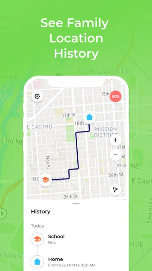 - SOS feature instantly notifies the family when one of the members is in danger and requires help.