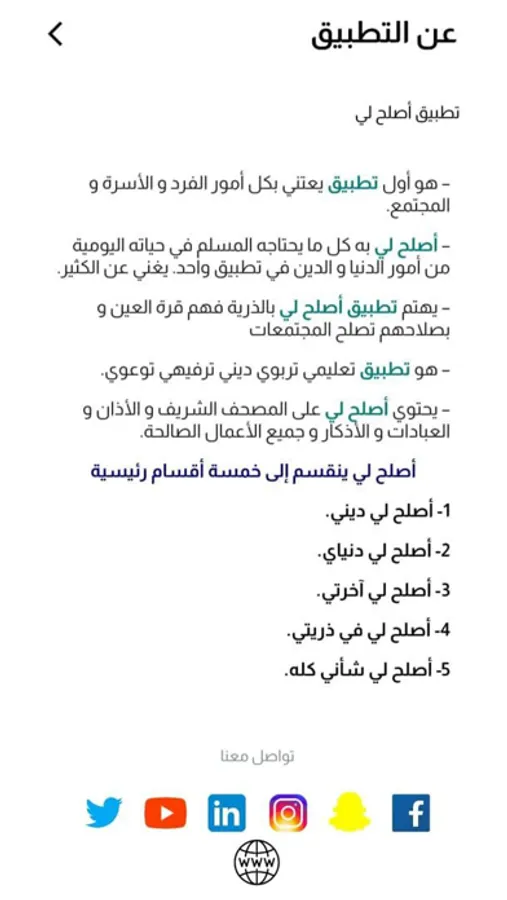 * أصلح لي به كل ما يحتاجه المسلم في حياته اليومية من أمور الدنيا و الدين في تطبيق واحد يغني عن الكثير .