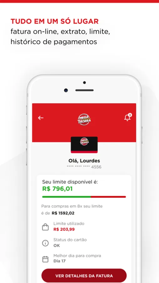 Com o aplicativo do Cartão Mega Thorra, você pode realizar compras, consultar seus limites, ver seu histórico de transações, controlar seus gastos, lembrar onde eles aconteceram, e ficar por dentro de promoções da Rede. Tudo isso de maneira prática e rápida., você pode realizar compras, consultar seus limites, ver seu histórico de transações, controlar seus gastos, lembrar onde eles aconteceram, e ficar por dentro de promoções da Rede Costa Azul. Tudo isso de maneira prática e rápida.