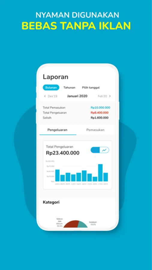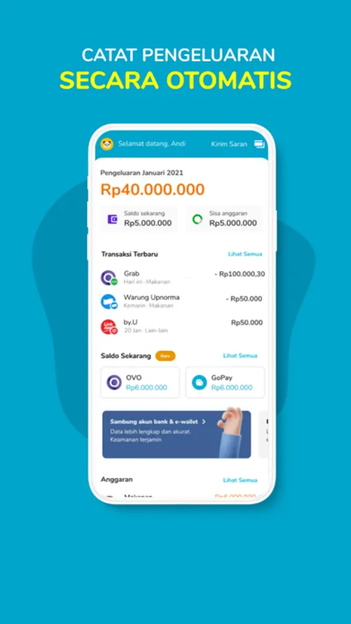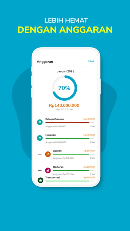 Atur anggaranmu agar pengeluaranmu lebih terkontrol. Dapatkan notifikasi otomatis jika anggaranmu sudah hampir habis