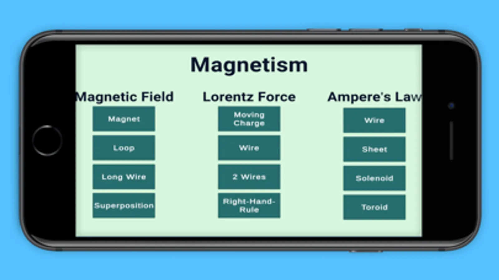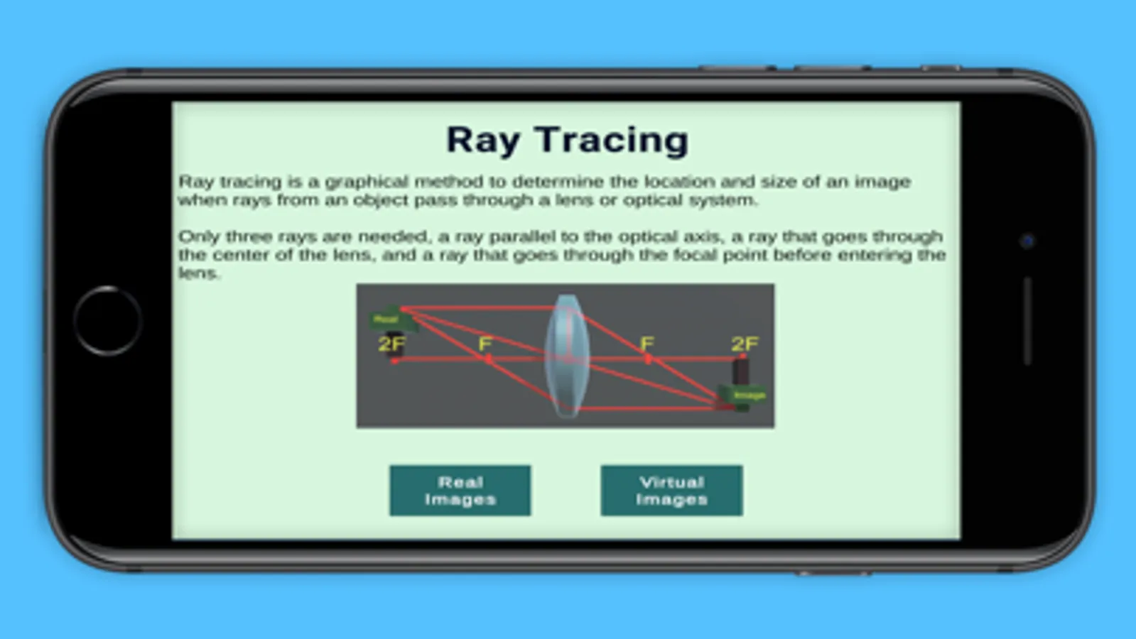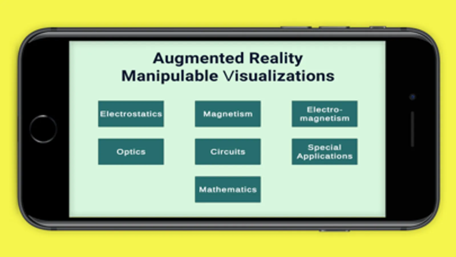 View augmented reality model of physics and math concepts through your phone. You'll need a Merge Cube (downloadable from the internet). Click on different button to navigate to different topics. Click on View in AR to view the model. Hold the Merge cube so that your camera can see it well. Move the cube around until you see the model. Click on the buttons to interact with the model. Click the back button to get back to the info screens or to the main screen.