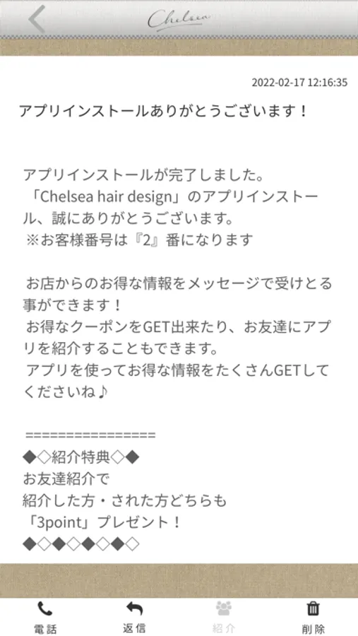 ChelseaのアプリをSNSを通じてお友達に紹介する事ができます。