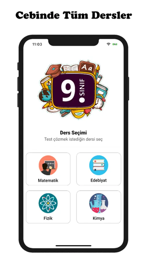 9.Sınıf Tüm Dersler uygulaması her nerede olursanız olun derslerinize çalışmanıza imkan sağlamaktadır . Konu testlerini çözerek bilgilerinizi pekiştirerek konuları birer birer bitirebilirsiniz.