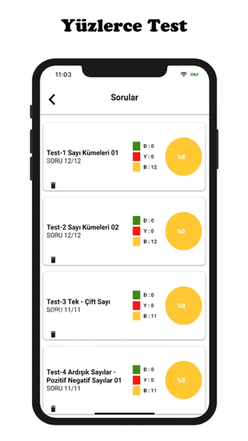 Uygulamamızda tüm konuları test etmek için hazırlanmıştır.