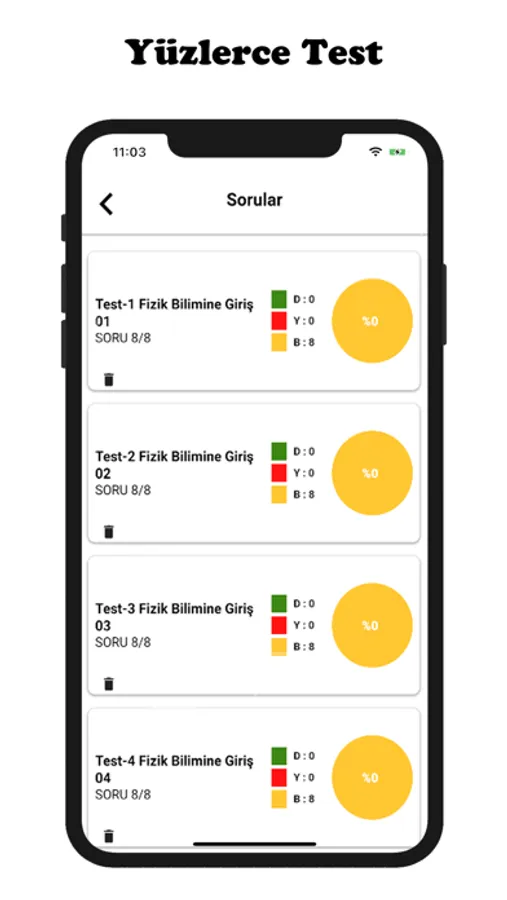 Uygulamamızda tüm konuları test etmek için hazırlanmıştır.