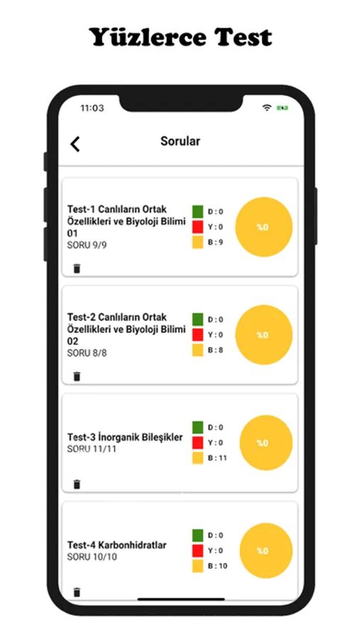Uygulamamızda tüm konuları test etmek için hazırlanmıştır.