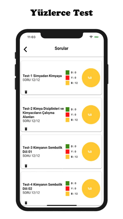 Uygulamamızda tüm konuları test etmek için hazırlanmıştır.