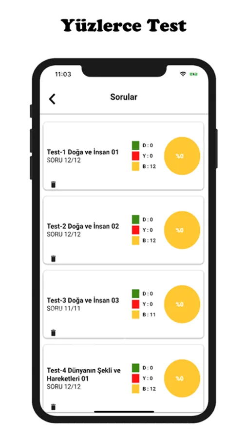 Uygulamamızda tüm konuları test etmek için hazırlanmıştır.
