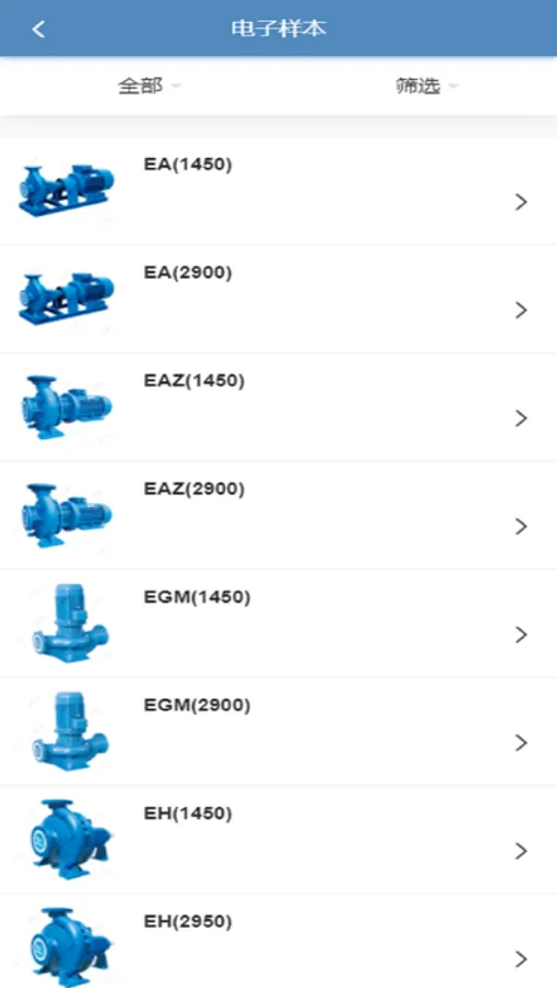 2.浏览产品列表,包括性能曲线,安装图,产品属性等