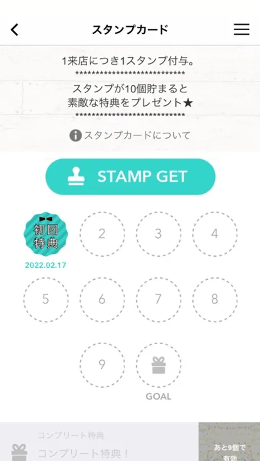 ・ご来店ごとにたまるスタンプカード。