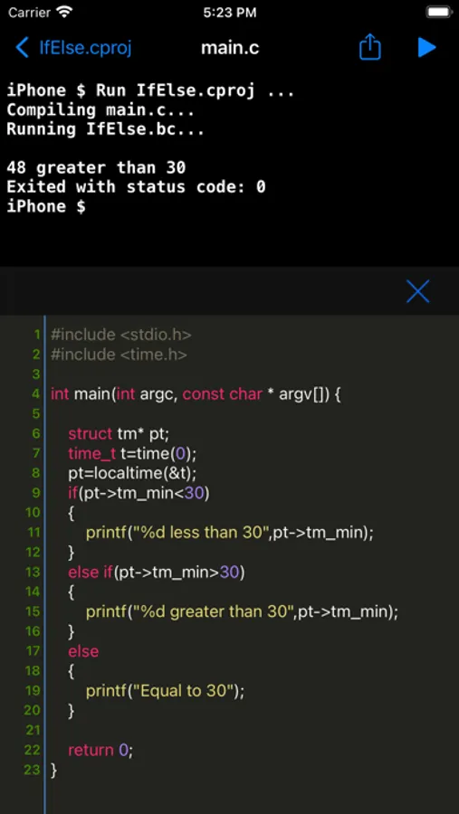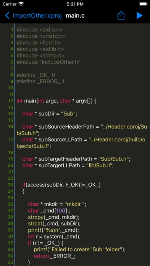 A software development tool for compiling and running C language on mobile devices, with built-in basic environment integrating Python and Lua.