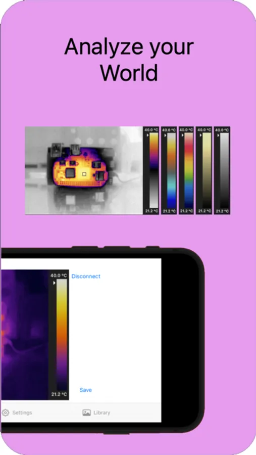 Use your iPhone or iPad to connect to thehttps://store.groupgets.com/products/tcam-mini open source tCam-Mini wireless thermal imaging camera designed by danjuliodesigns, LLC and available at Group Gets. View thermal images captured by the long-wave infrared radiation (LWIR) sensor in a variety of palettes designed to tease out different details. Save radiometric data files that can be shared on a Mac with the Desktop application. Export jpeg images to Photos, Messages or Email. Configure tCam-Mini's operating parameters such as AGC, Emissivity and Gain to match your needs.