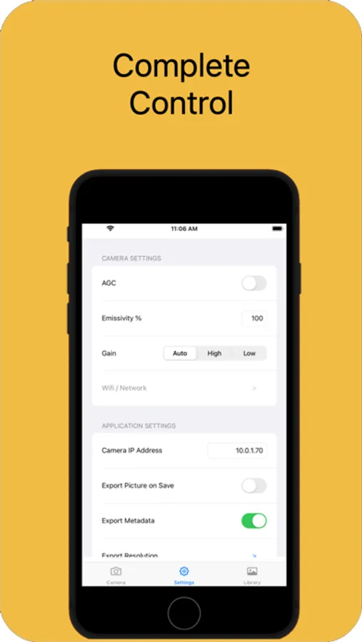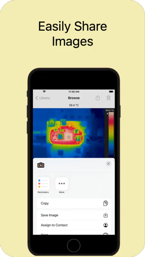 Note: This application uses Wifi to communicate with tCam-Mini and requires a tCam-Mini to display or save live images. It can be used without a tCam-Mini to view and export saved images.