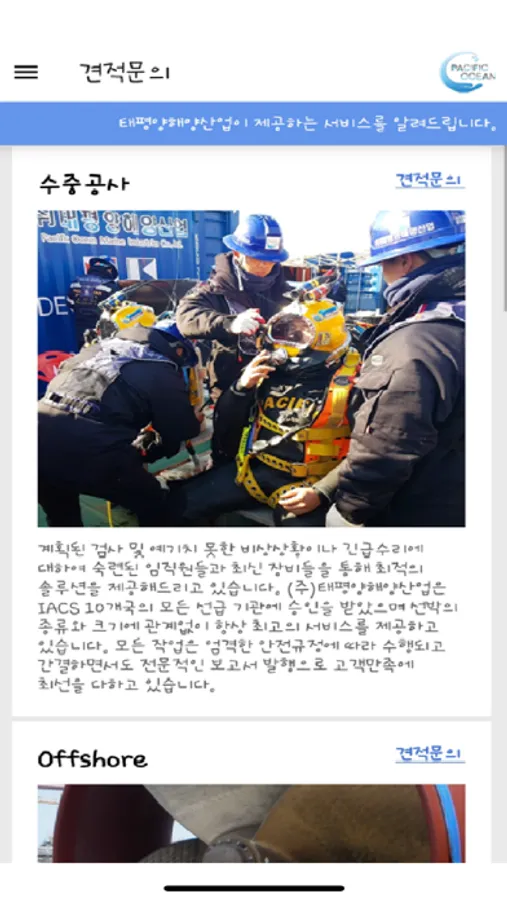 해양작업 등과 관련하여 견적의뢰를 하실 수 있고,